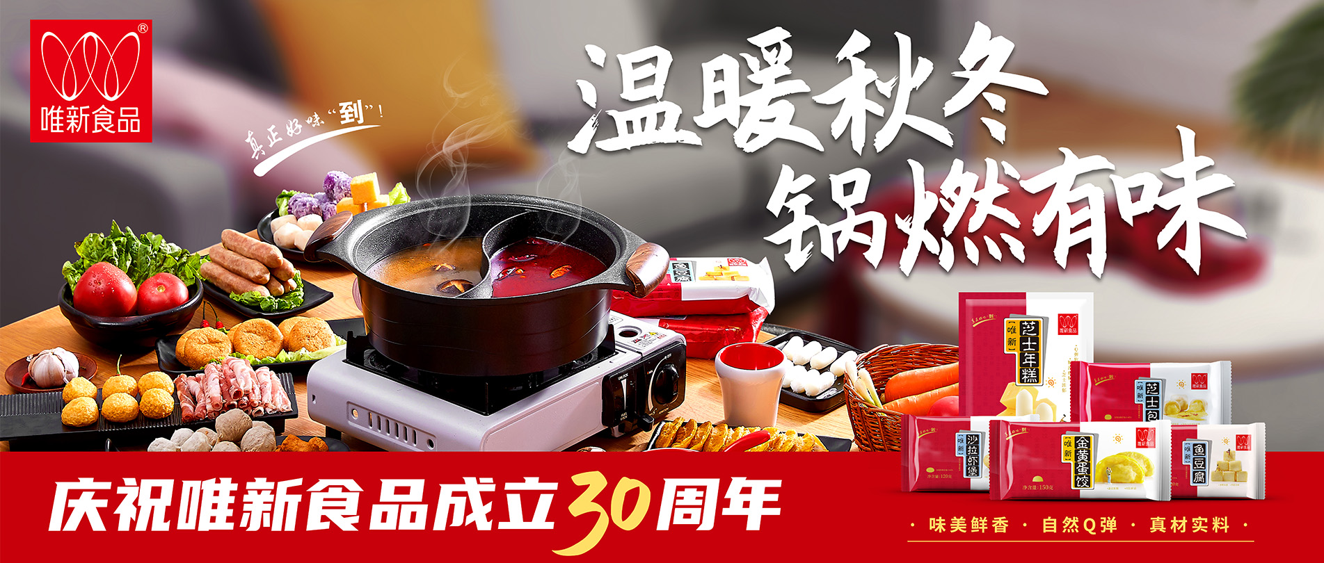 • 選擇蛋白質含量及新鮮度高的豬后腿肉為原料,模擬手工捶打的打漿工藝,再經煮制、冷卻、速凍工藝才可生產出自然脆彈的唯新貢丸,是居家佐餐、火鍋的美味食品。近年來我們還研發生產了香腸、蝦滑、魚丸、牛肉丸等大眾喜愛的家庭火鍋料速凍食品。